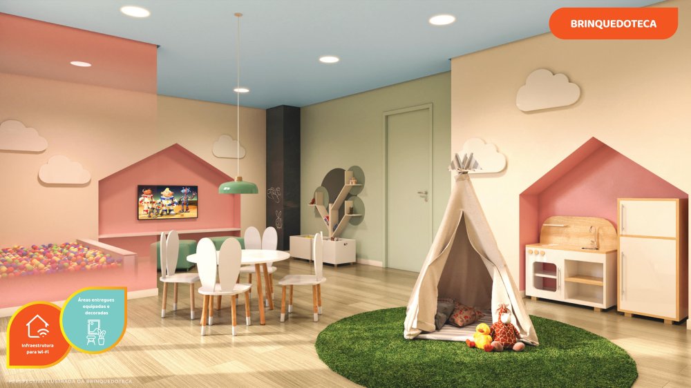 Academia, Bicicletário, Brinquedoteca, Churrasqueira, Garagem, Piscina, Playground, Sacada, Salão de Festas, Salão de Jogos