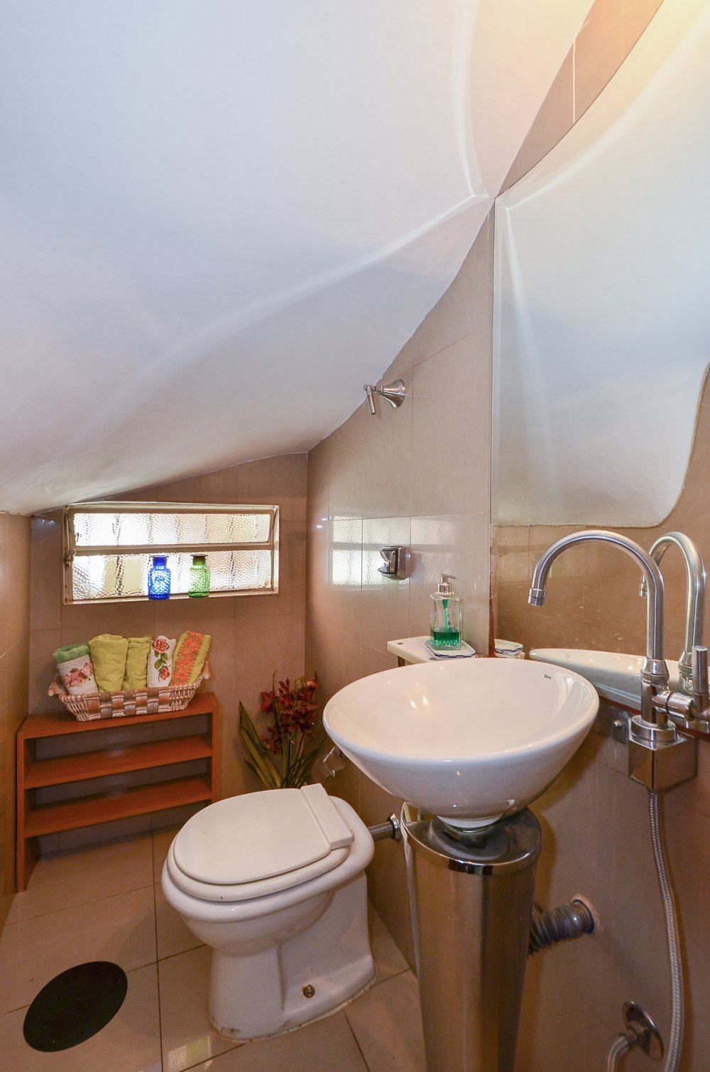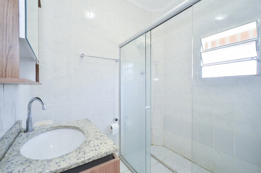 Na parte de cima temos 3 dormitórios, sendo uma suíte e mais um banheiro.