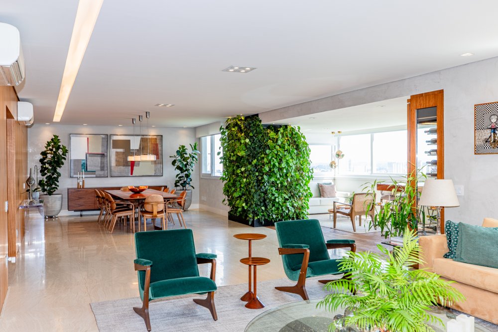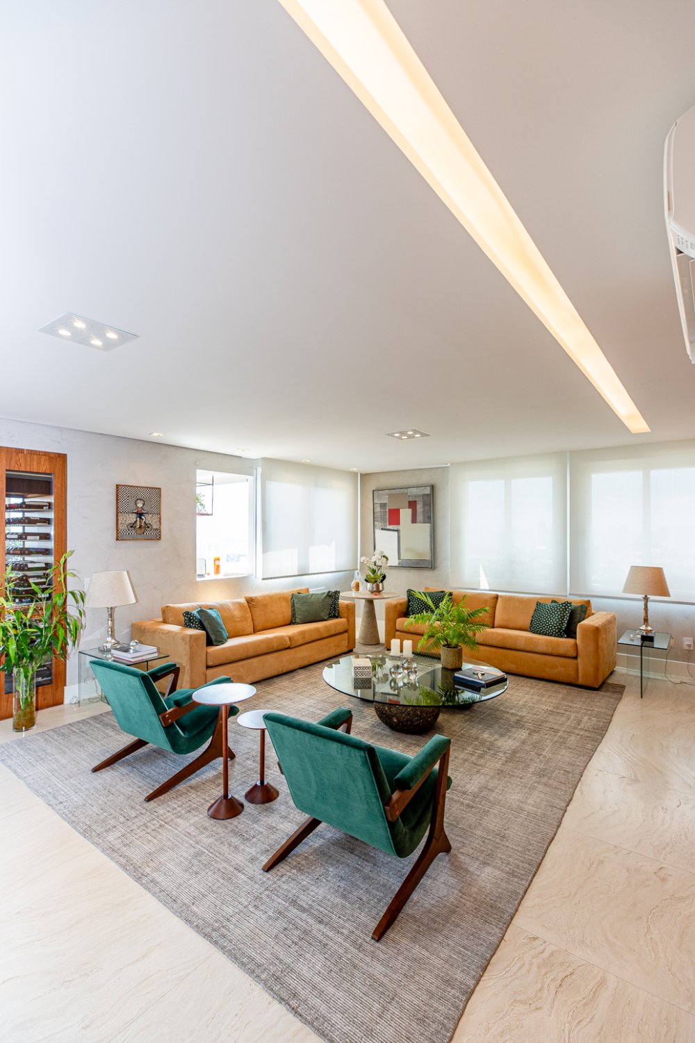Ampla sala para dois ambientes, banhada de muita luz natural, perfeita para entreter e desfrutar de momentos inesquecíveis com familiares e amigos. Chapelaria e lavabo completam este incrível ambiente, logo no hall de entrada do apartamento.