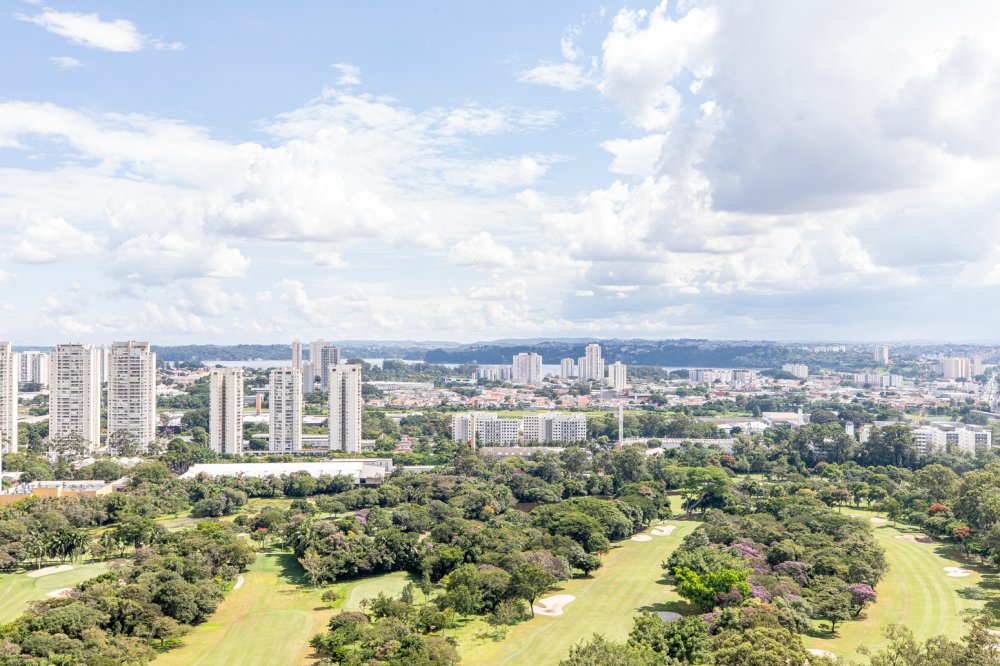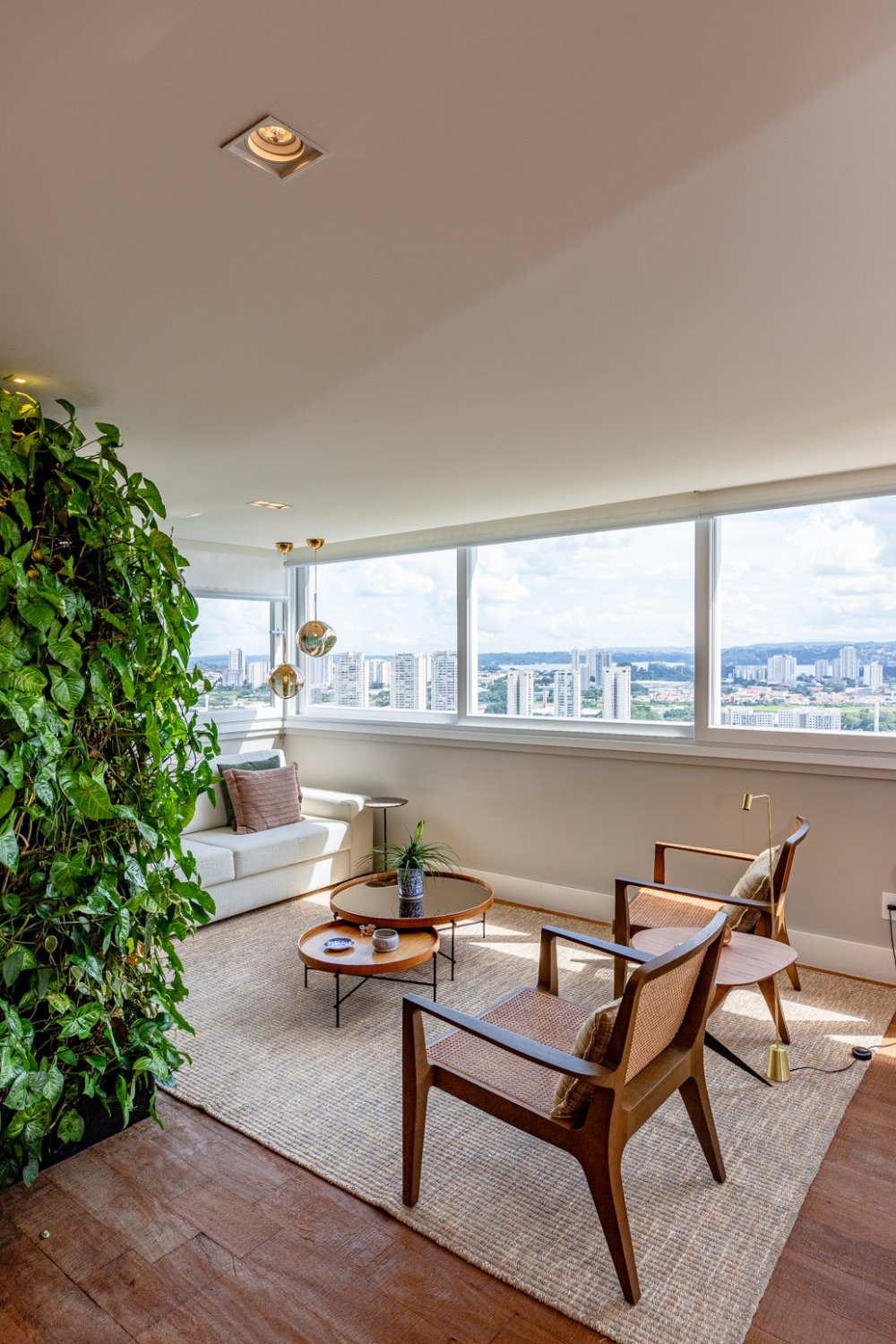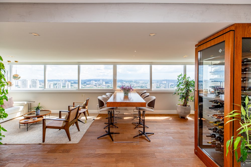 Varanda integrada e envidraçada, proporcionando uma conexão perfeita entre o interior e o exterior, além de oferecer vista panorâmica deslumbrante para o clube de golfe.
